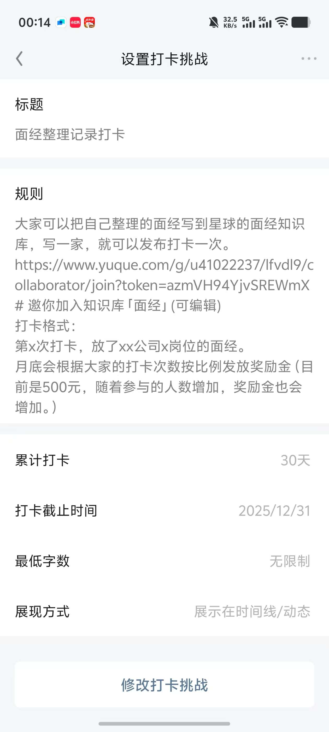 (10)奖励金激励,会根据大家打卡学习/ 面经打卡整理情况,每个月每个季度发放奖励金。有的人陆陆续续已经获得了数千月的奖励金,是加入星球费用的数十倍了