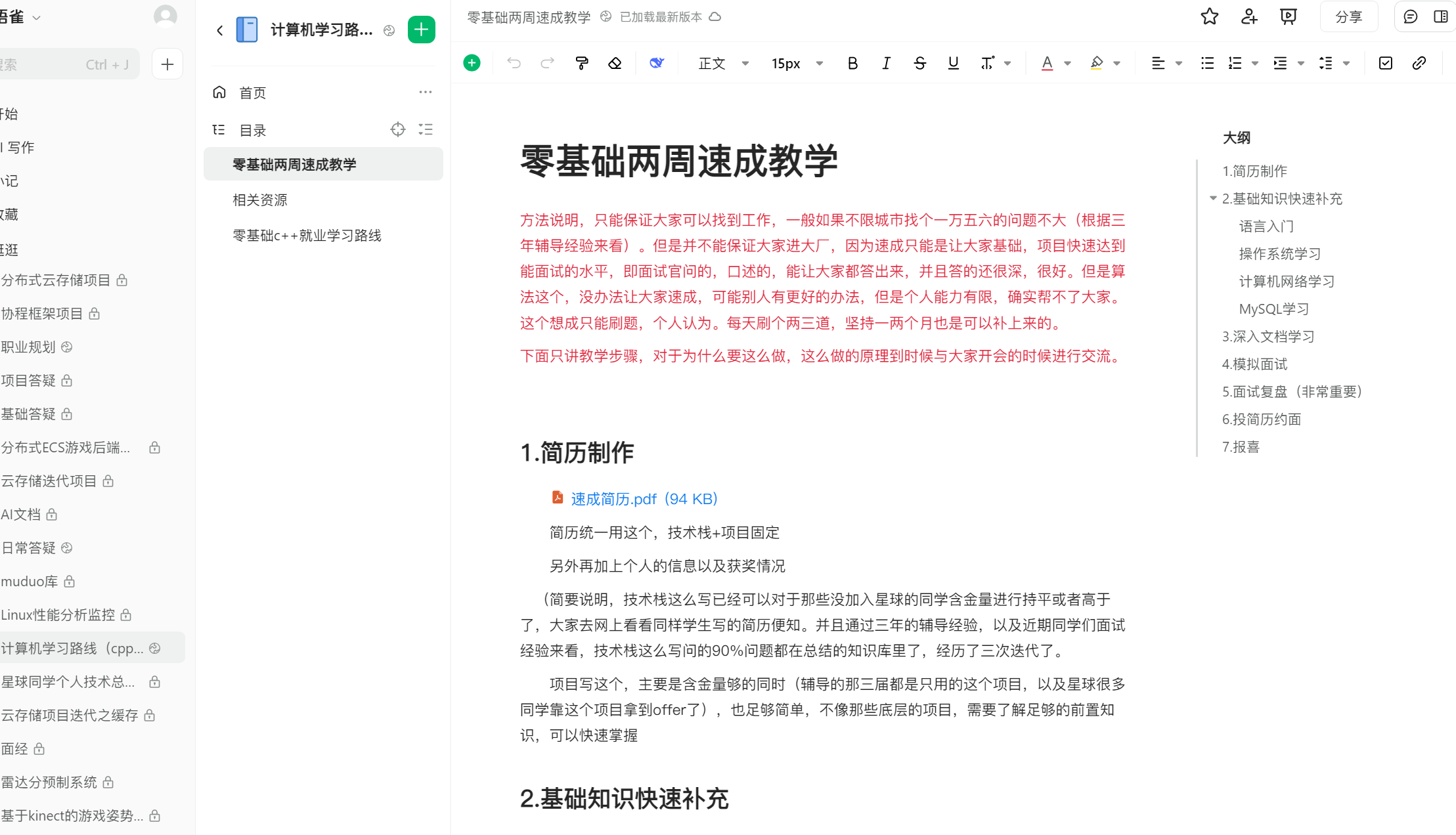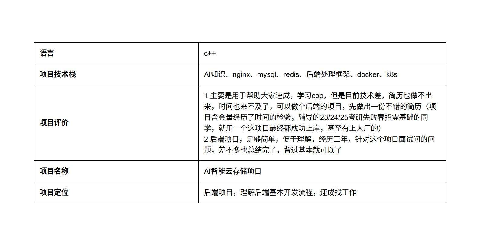 那有没有一份八股,内容不是特别多,也可以和简历书写完全对应(面试问的相应问题都可以在资料里快速找到答案)