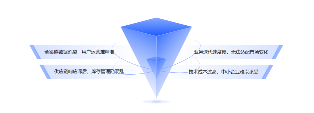 技术成本过高,中小企业难以承受:定制化数字化系统开发人力、物力成本高,组建专业研发团队开支大,高昂成本成为中小零售电商转型的"拦路虎"。