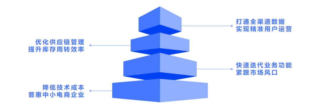 业务迭代速度慢,无法适配市场变化:行业风向多变,新营销玩法、运营场景层出不穷。传统开发模式下,新功能上线需数周甚至数月,错失市场风口,中小电商受技术团队限制,响应更慢。