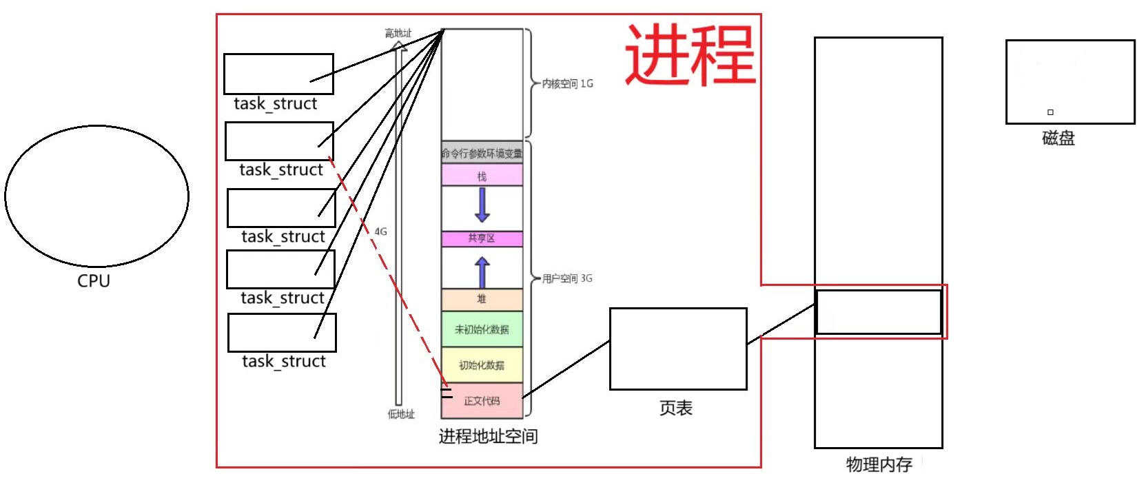 当我们要运行一个进程时,操作系统首先就要创建内核数据结构,进程PCB,地址空间,页表,文件描述符表等,然后将进程加载到物理内存中,在页表上建立虚拟地址与物理的映射关系,首先我们要理解地址空间是进程的资源窗口,因为进程执行正文代码是从地址空间上执行的,进程最初获取变量数据同样也是以地址空间为起点的堆区,栈区等进行获取的,同时进程获取执行共享库也是从地址空间上进行执行的,进程执行系统调用,同样的也是经过身份切换后,从用户态转化为内核态,从自己的地址空间上执行的,同样的变量,正文代码等都属于数据,是数据那么就是资源,所以我们说地址空间是进程的资源窗口。