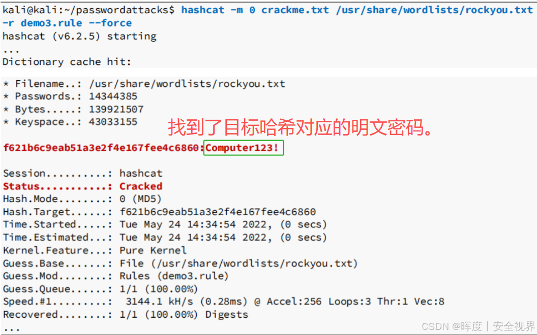 成功破解,破解出的密码 :Computer123!