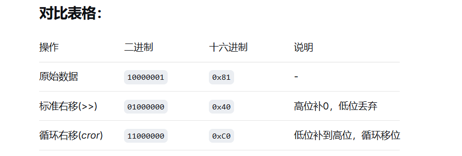 1. cror() - 循环右移函数