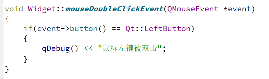 | *mouseDoubleClickEvent(QMouseEvent event) | 鼠标按键被双击时触发 |