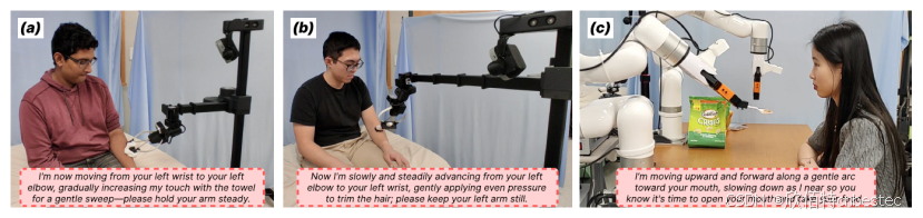 1、 任务覆盖:在洗浴、剃须、喂食三类核心场景中进行测试。