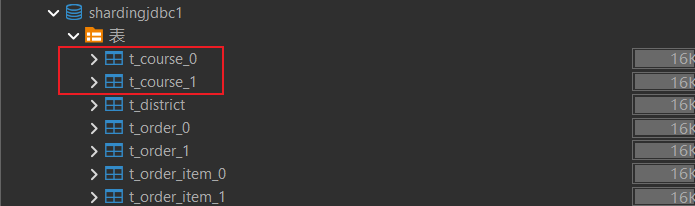 shardingjdbc0和shardingjdbc1中创建 t_course表.sqlCREATE TABLE `t_course` ( `cid` bigint(20) NOT NULL, `user_id` bigint(20) DEFAULT NULL, `corder_no` bigint(20) DEFAULT NULL, `cname` varchar(50) DEFAULT NULL, `brief` varchar(50) DEFAULT NULL, `price` double DEFAULT NULL, `status` int(11) DEFAULT NULL, PRIMARY KEY (`cid`) ) ENGINE=InnoDB DEFAULT CHARSET=utf8