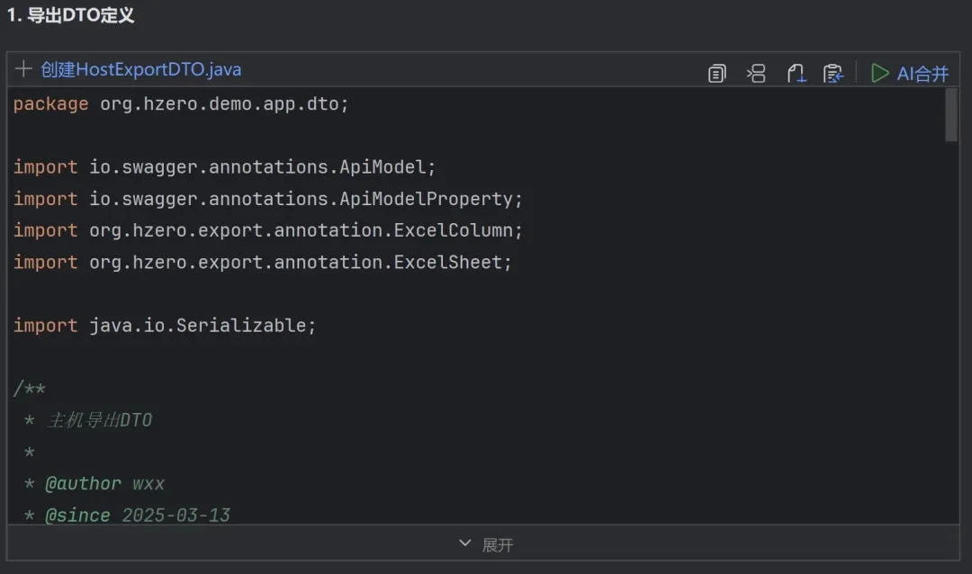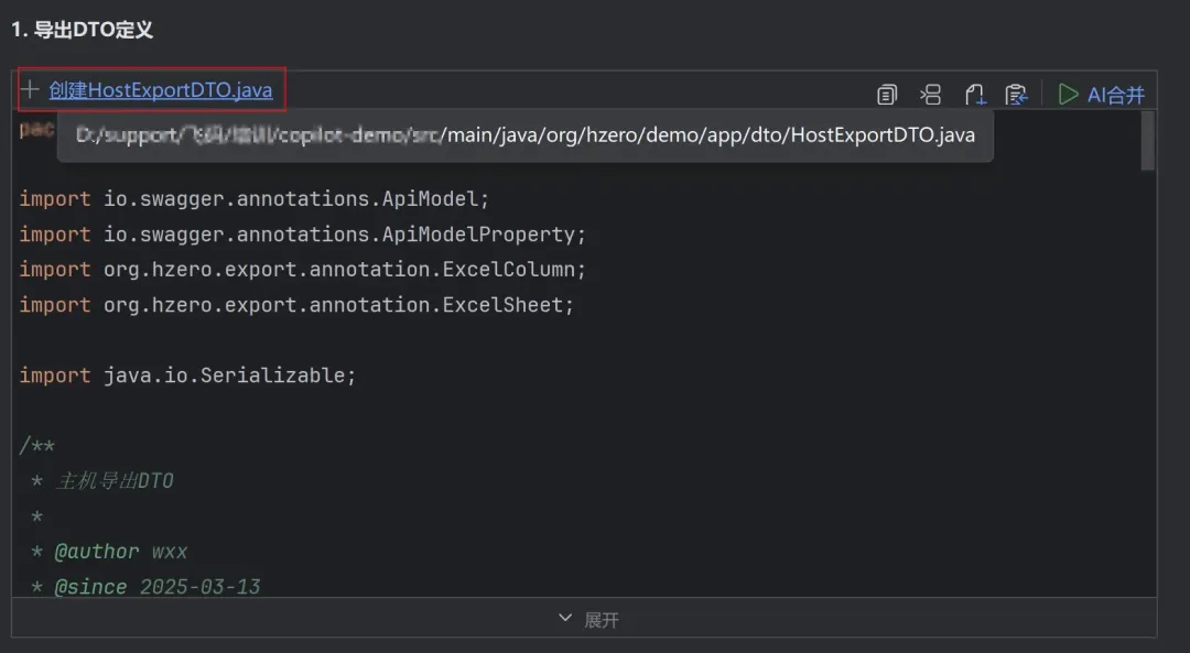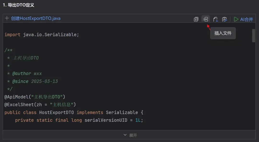 智能对话体验优化:代码展示更清晰,支持一键创建文件、插入/替换代码、快速跳转与Diff对比等;同时,新增「AI合并」,AI建议代码可一键智能合并至本地文件,操作更高效
