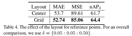 =4,拥挤数据集如 UCF-QNRF 设为 8),参考点布局分为两种: