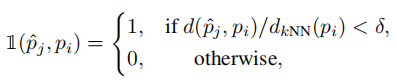 密度归一化距离准则避免拥挤区域(真实点密集)与稀疏区域采用相同距离阈值,定义匹配准则: