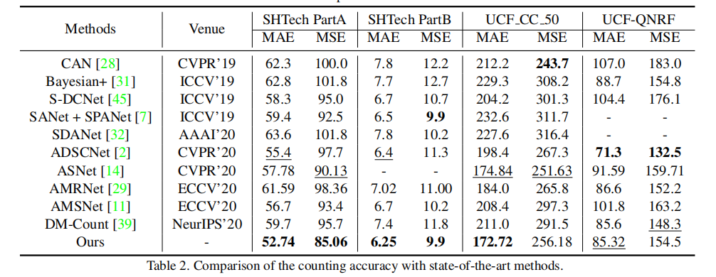 - NWPU-Crowd:MAE [O]=77.44,比第二名 DM-Count 降低 12.4%,整体计数性能 SOTA。