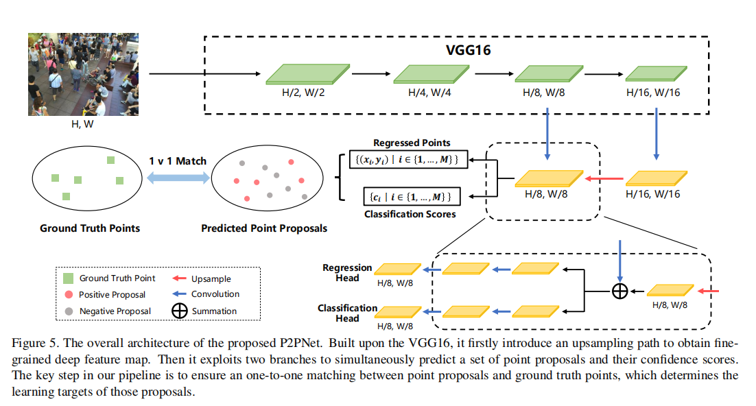 P2PNet 是纯点基框架的具体实现,分为特征提取、点提案生成、一对一匹配、损失函数四大模块。