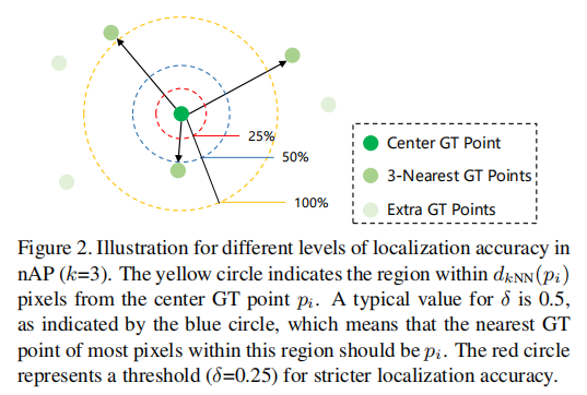 - 设计密度归一化平均精度(nAP):解决了现有指标的缺陷,能同时评估定位误差、计数准确性,并考虑人群密度差异。