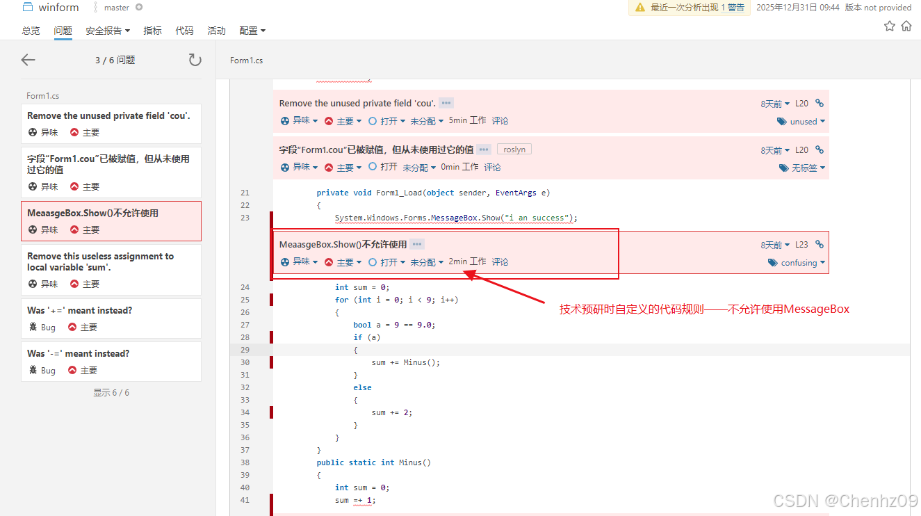 我们现在定义一个规则,不允许使用Form1_Load方法,在wpf程序中应该使用MVVM架构通过事件绑定实现窗体加载逻辑。
