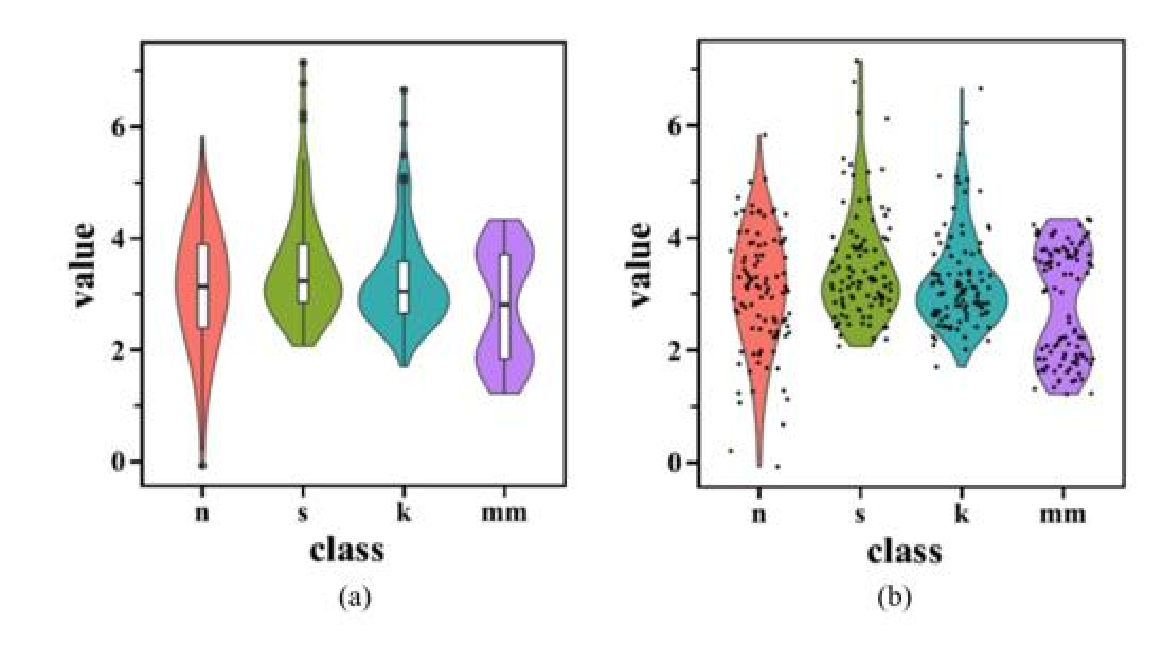 同时,不同分布的核密度也可结合上一节的山峰展示,更清楚地展示出不同类型的分布差异。