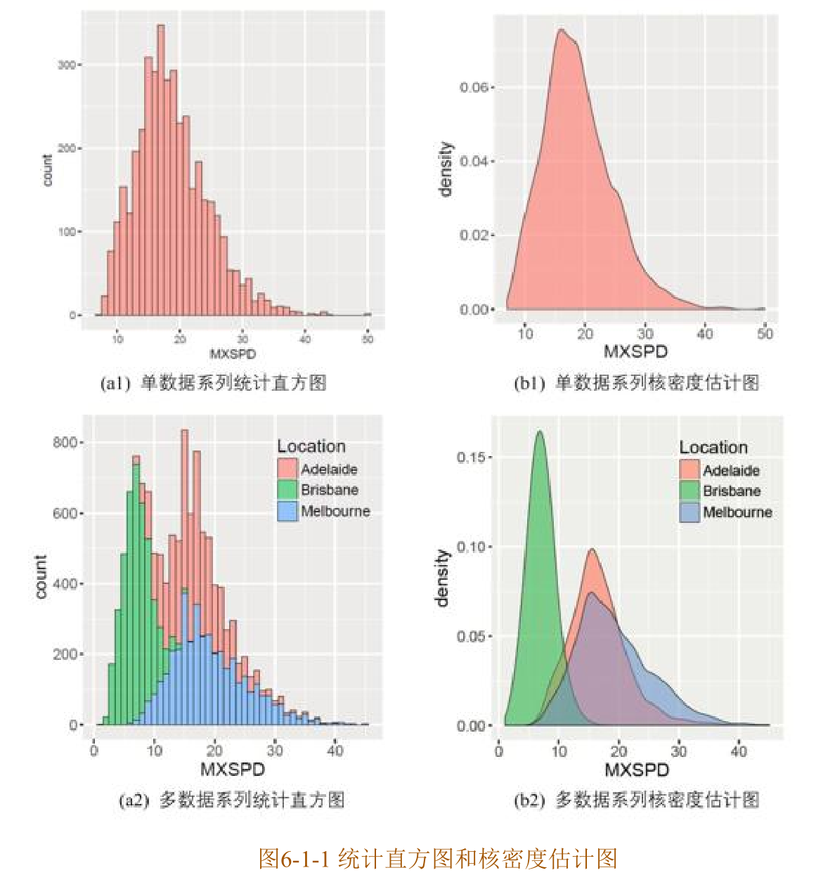 统计直方图和核密度估计图可结合显示数据的整体分布特点,更有效地展现数据的分布和特点。