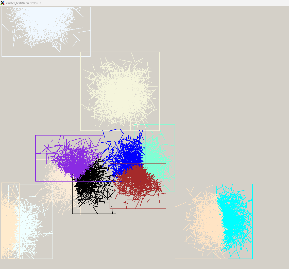 n条线段(用中心点(cx, cy)表示)分成k个空间上紧凑的组(簇),使得同一组内的线段彼此靠近。