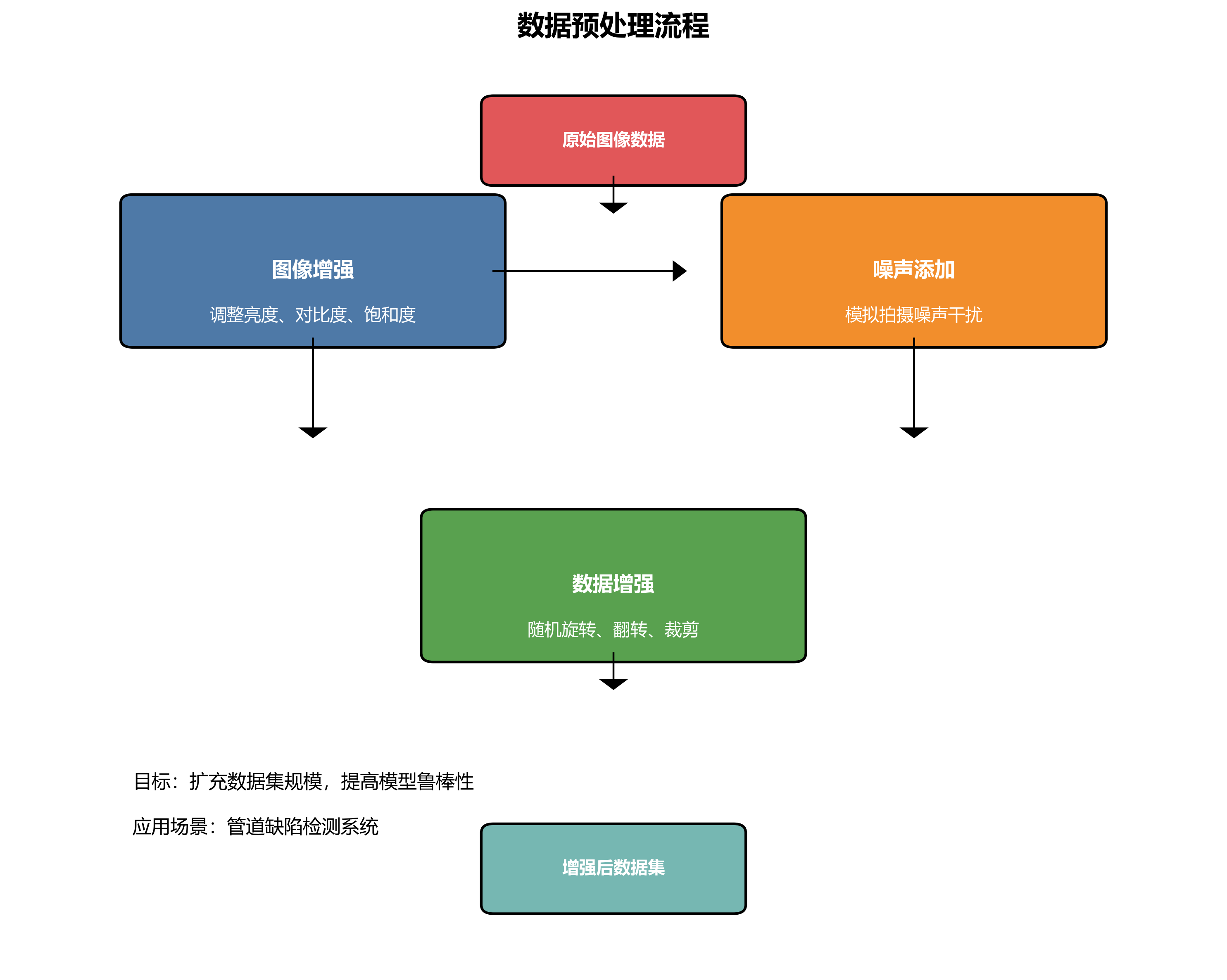 - 图像增强:通过调整亮度、对比度和饱和度,模拟不同光照条件下的管道场景