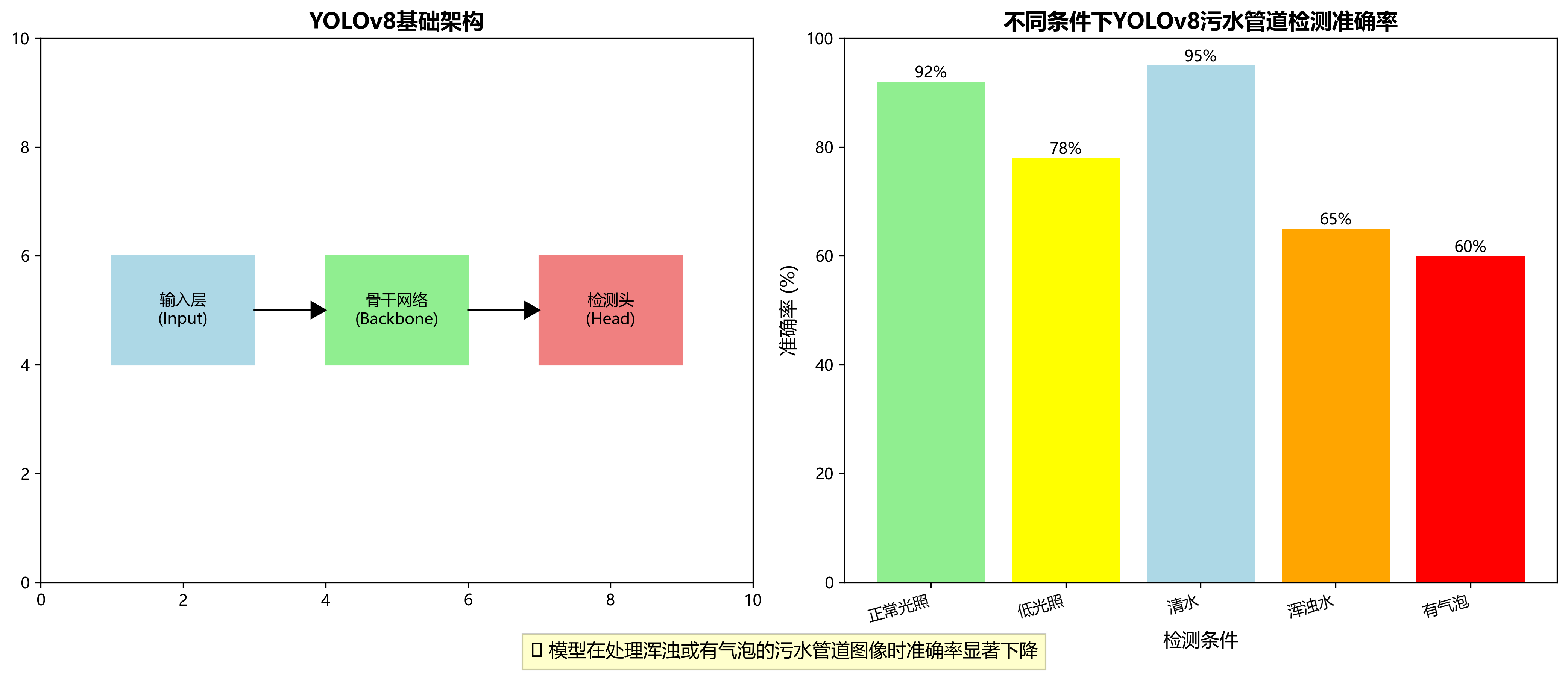 在污水管道分类任务中,YOLOv8的基础架构表现出色,但在处理不同光照条件、不同水质情况下的管道图像时,仍存在一定挑战。特别是当污水浑浊或有气泡干扰时,模型容易产生误判。💡