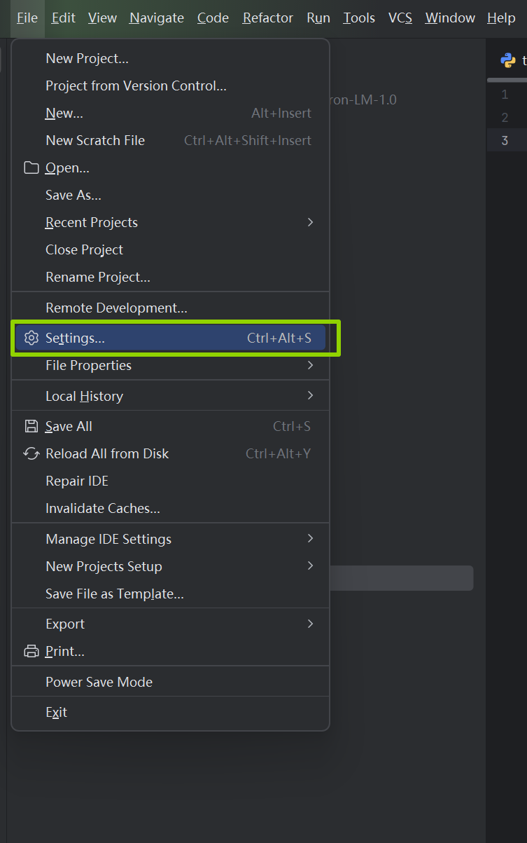 - 点击菜单栏的 File → Settings (Windows/Linux)