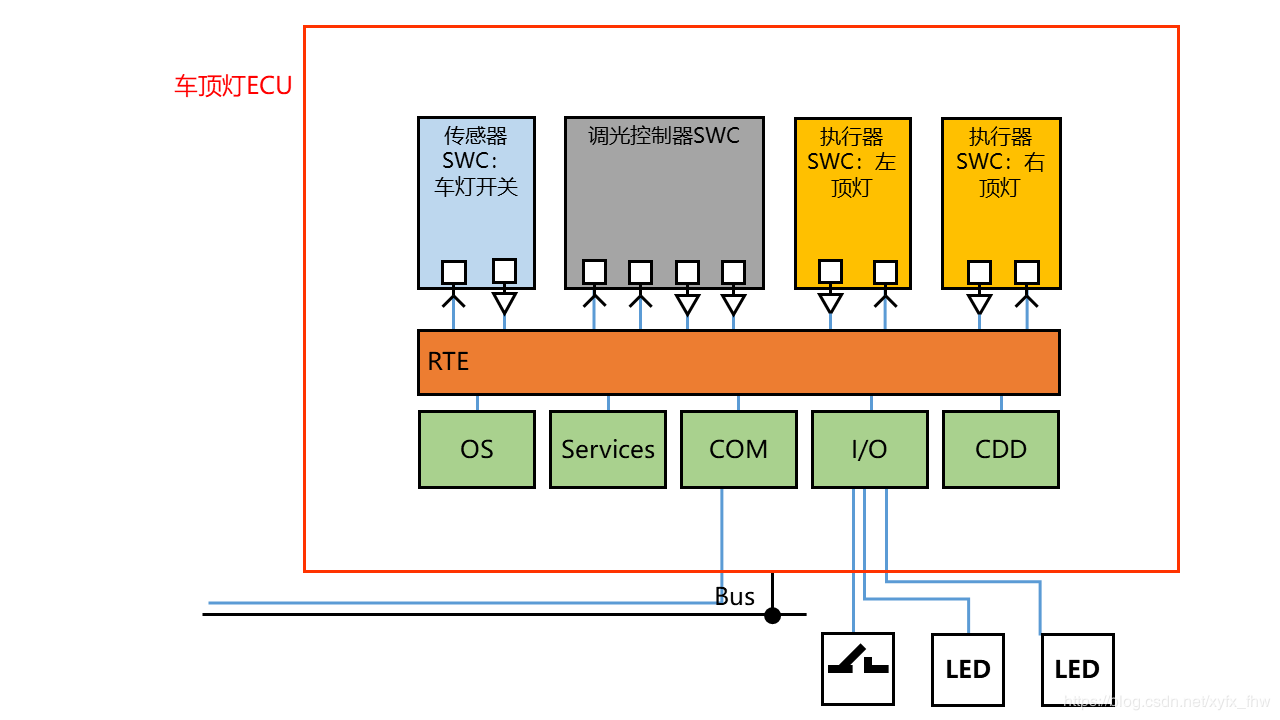 - 之前说的 S/R 和 C/S 接口就是 AutoSAR 接口,其所在位置包括: SWC<=>RTE、RTE<=>CDD、RTE<=>ECU AB(这里提一句,ECU AB 之前没有讲到,其实很多传感器、执行器的抽象都放在这里,其也可以看作是 SWC,IoHwAb 就在这里)。说明白一点,就是只要能看成是 SWC 处理的,就是 AutoSAR 接口。