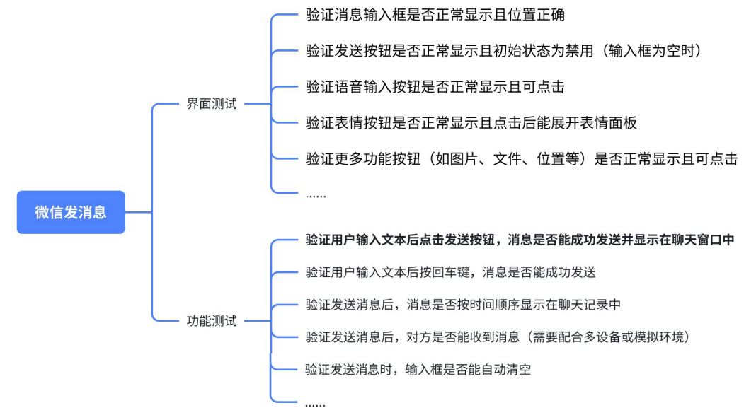 仍然以⽤例"验证用户输⼊⽂本后点击发送按钮,消息是否能成功发送并显⽰在聊天窗⼝中"为例