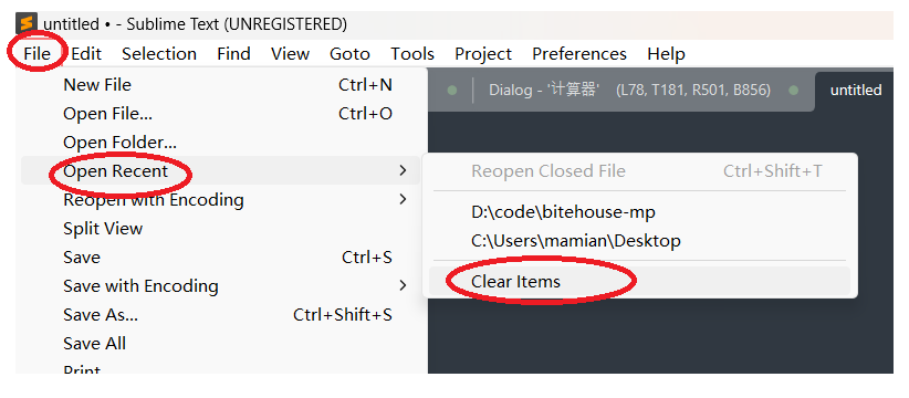 #定位Open Recent窗⼝Clear Items菜单项