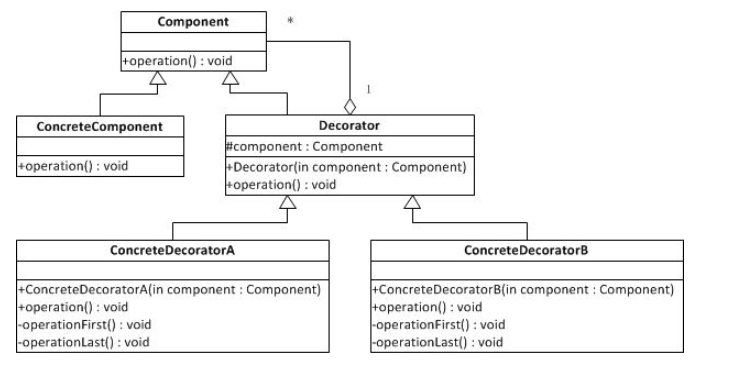 通过使用不同装饰类以及这些装饰类的排列组合,可以实现不同效果。