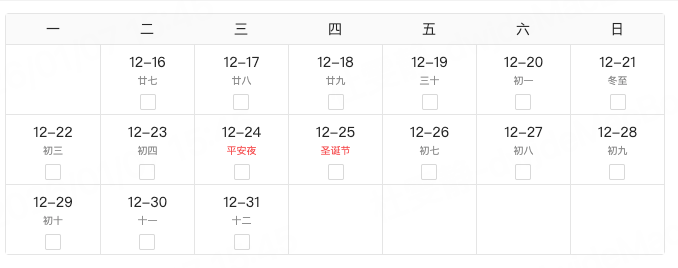 // 表头行样式(周一到周日)