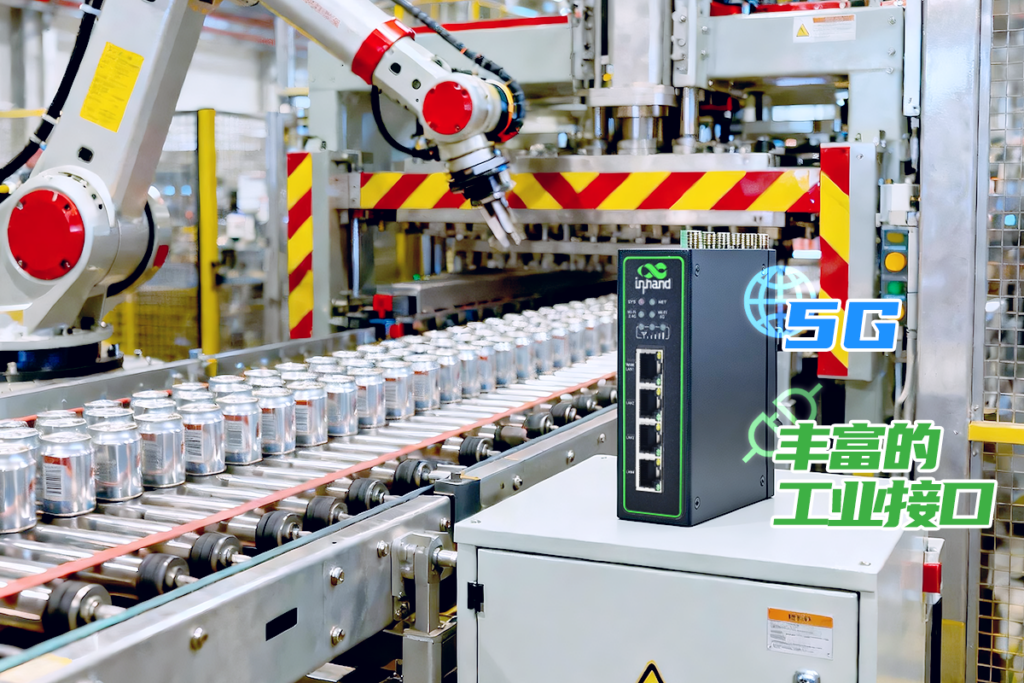 在自动化产线上,通过工业级5G IR624路由器作为现场核心接入节点,将 PLC、机器人、检测设备等关键单元统一接入网络。