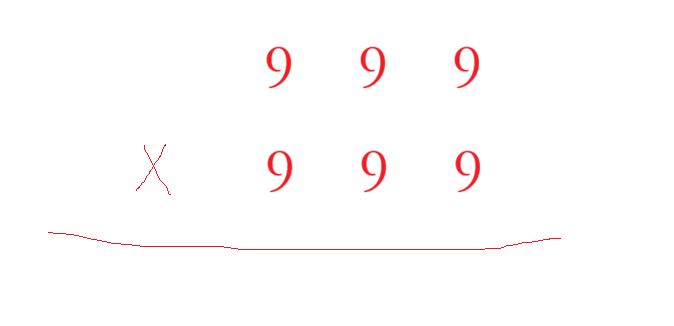 然后开辟一个数组,这个数组的大小为:两个字符串的长度 - 1,原因:假设是三位数乘以三位数,那么这个三位数的最大值位:999 * 999 :
