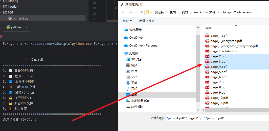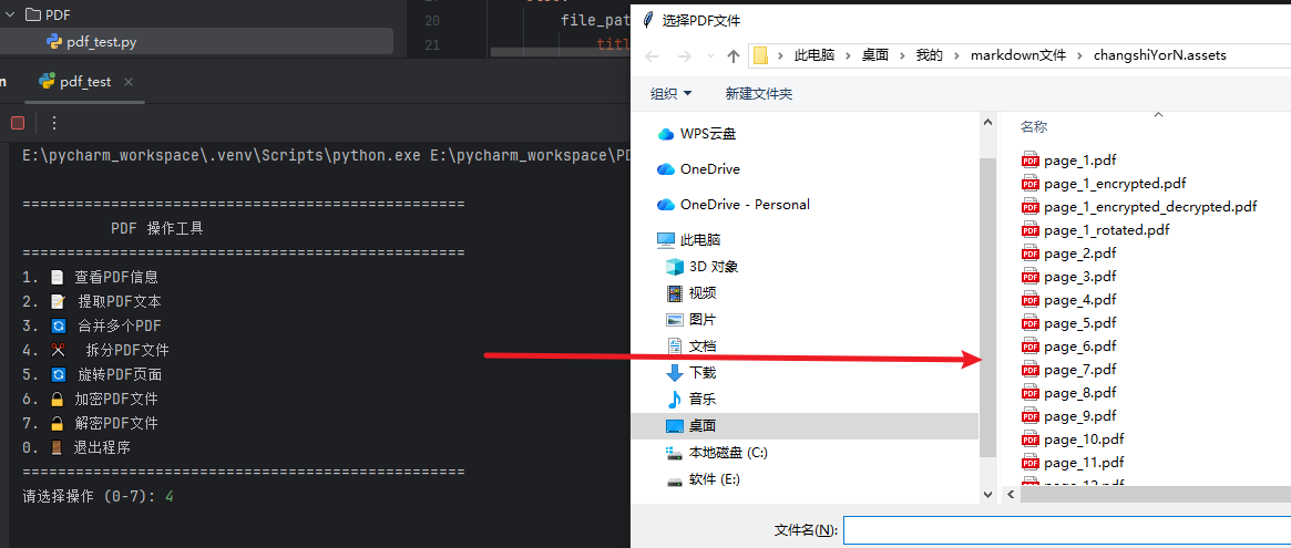 pdf_test.py; - 选择功能:输入0-7的数字选择对应操作(0为退出);