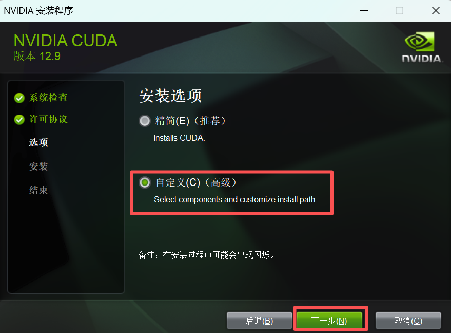 只勾选CUDA