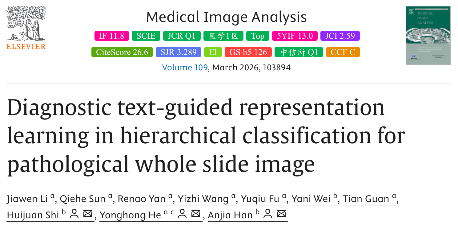(本文基于Jiawen Li等人发表于Medical Image Analysis的研究成果,论文题目:Diagnostic text-guided representation learning in hierarchical classification for pathological whole slide image,代码已开源:https://github.com/WonderLandxD/PathTree)