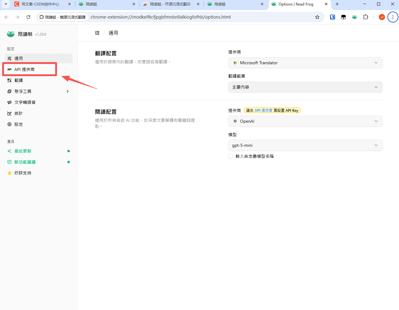 二、在陪读蛙 Read Frog 中配置 API Key