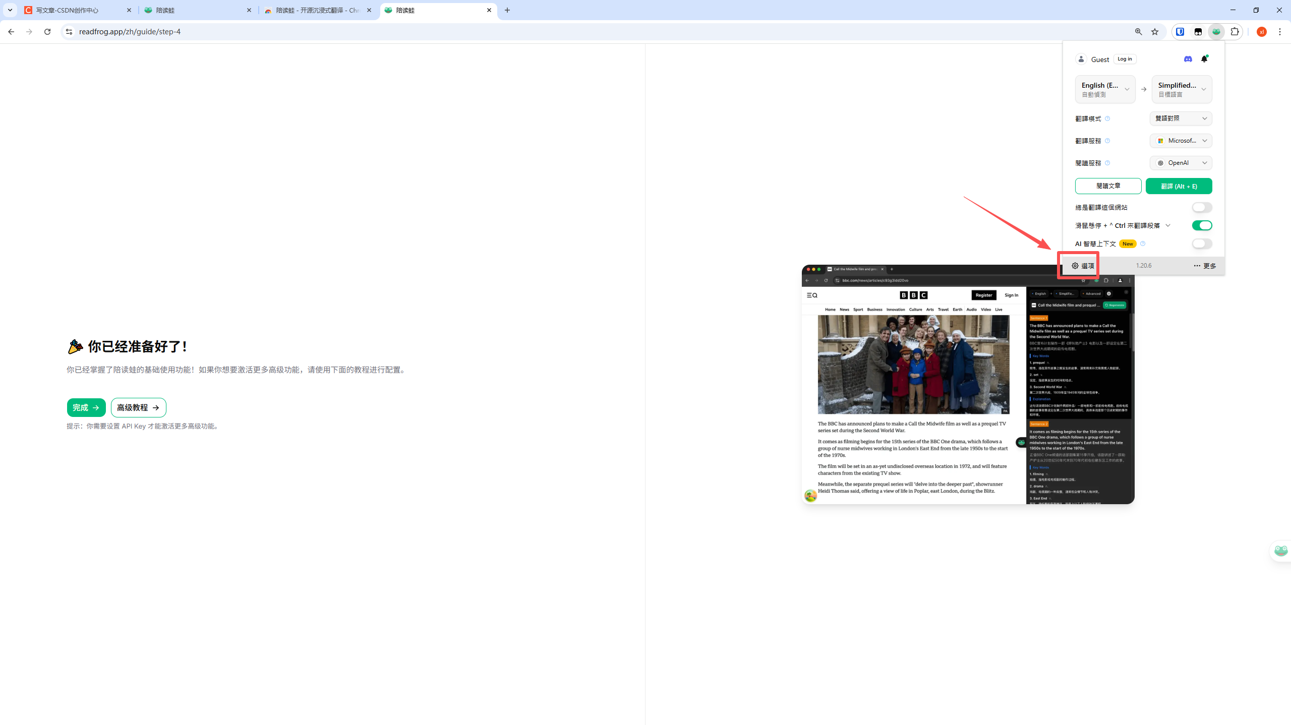 四、回到陪读蛙 Read Frog 完成配置