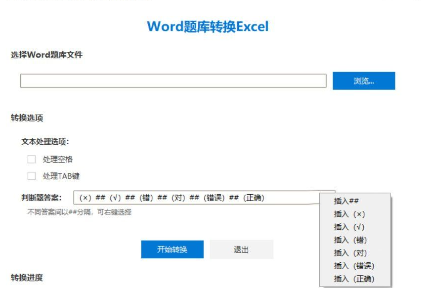 4、自定义判断题答案,不同答案以##分隔,如输入×##√,则表示遇到×或√时分列。自定义答案中可包含( ),右键可选,也可自行粘贴(不可直接输入)。界面已经默认常见判断题答案。
