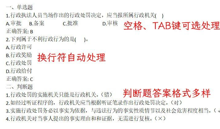 3、可勾选空格、TAB键处理,但位于( )中间的不处理,避免题干中含有( )时被分列。