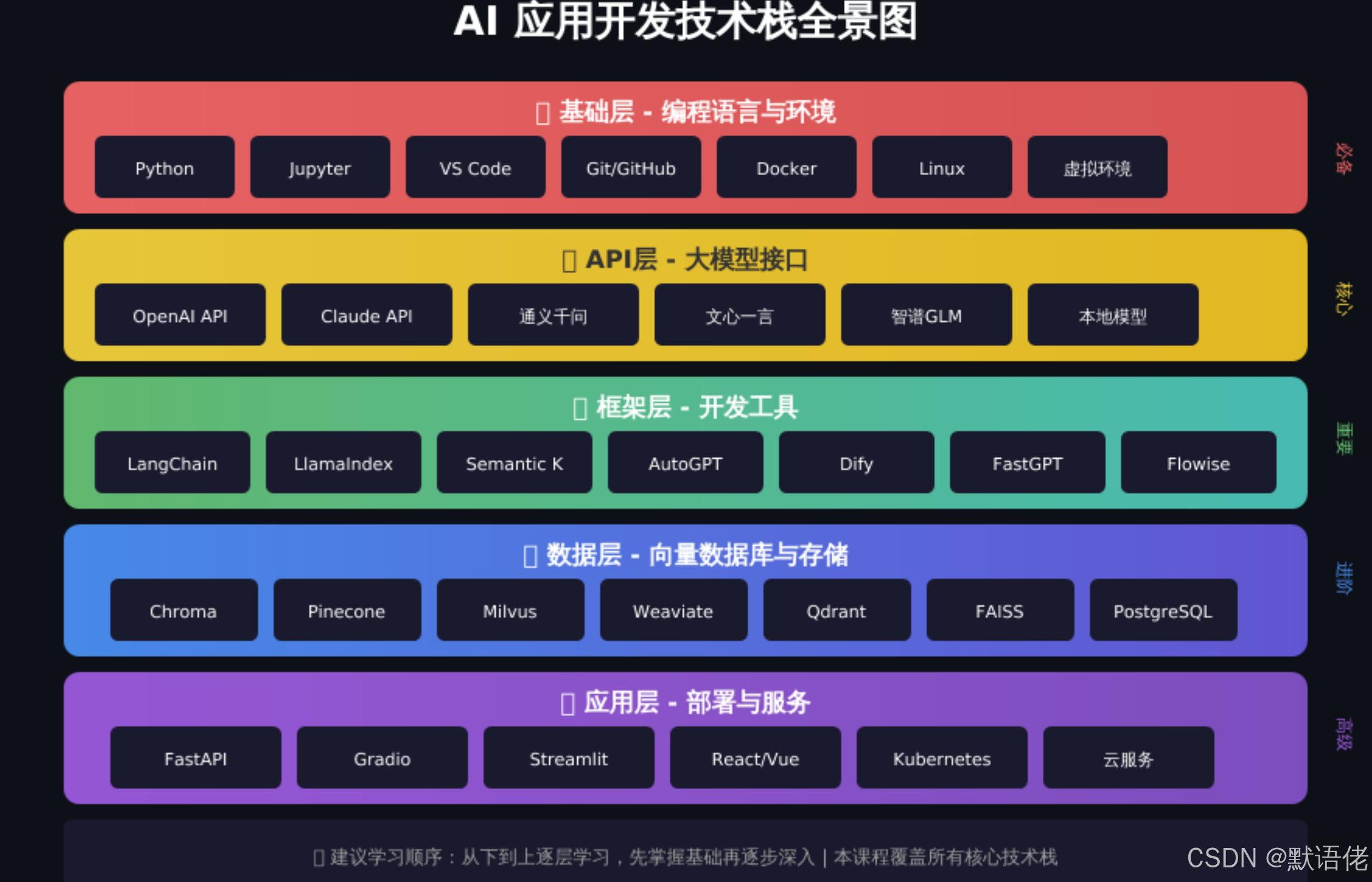 - 安全护栏设计:通过工程手段划定AI"红线",规避错误输出、隐私泄露等业务风险。这三项能力直接决定开发者的职业上限。