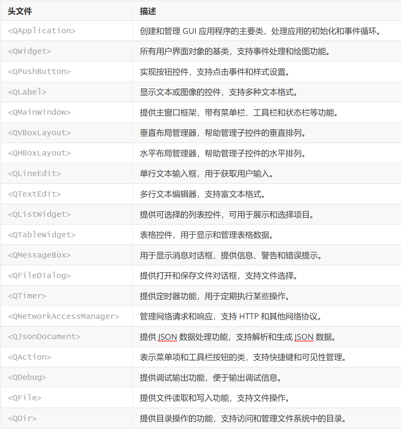 Qt常用头文件
