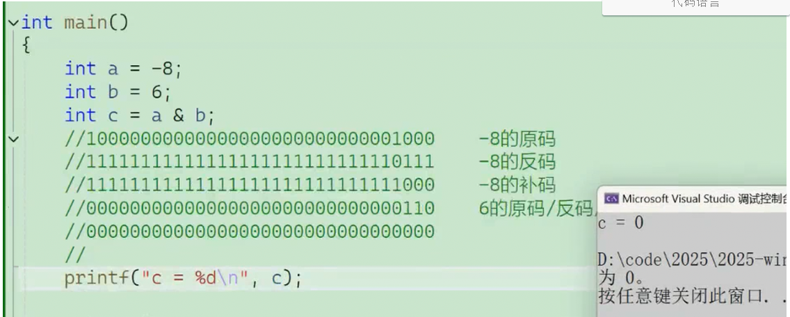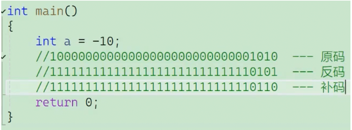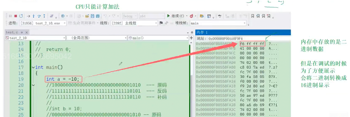 整数在内存中存储的是补码的二进制序列,计算的时候使用的也是补码~