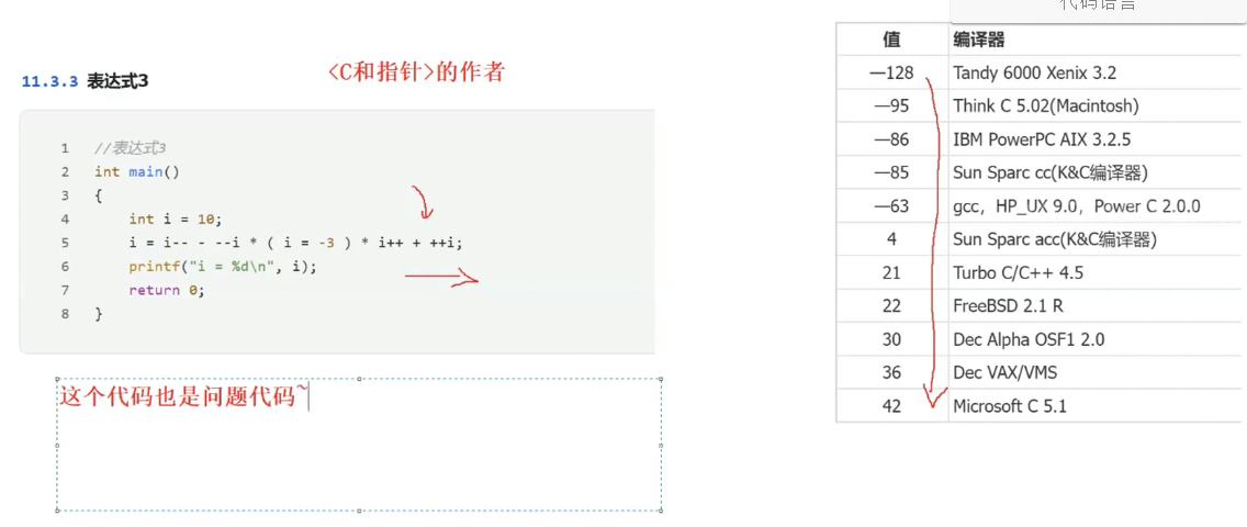// 表达式3(注意:该表达式存在C语言的"未定义行为",最终结果会因编译器/环境不同而变化)