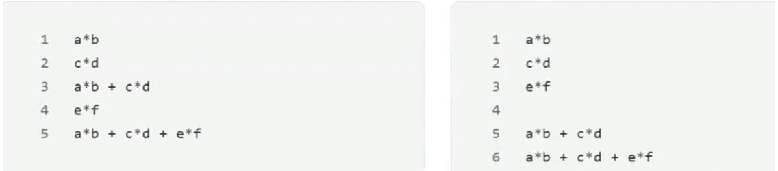 // 2. 加法运算符(+)是左结合性,所以完成所有乘法后,会从左到右依次执行加法:先算"(a*b) + (c*d)",再将结果与"e*f"相加。