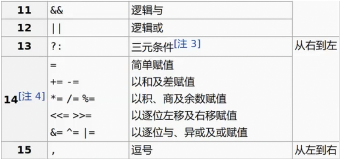 运算符的优先级顺序很多,下面是部分运算符的优先级顺序(按照优先级从高到低排列),建议大概记住这些操作符的优先级就行,其他操作符在使用的时候查看下面表格就可以了。