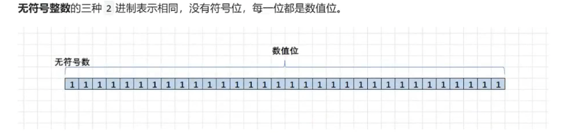 无符号整数的三种2进制表示相同,没有符号位,每一位都是数值位