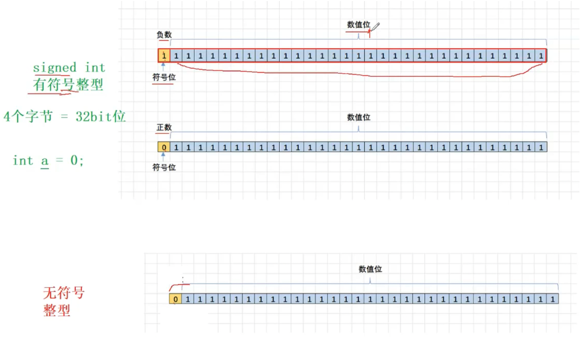 无符号整型没有符号位,全都是数值位,因此无符号整型的储存范围比有符号整型存储范围大