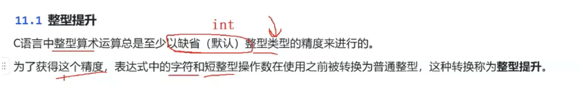 C 语言中整型算术运算总是至少以缺省(默认)整型类型的精度来进行的。
