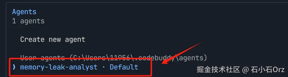 然后,我们在命令行重新输入/agents,选择我们刚创建的智能体。