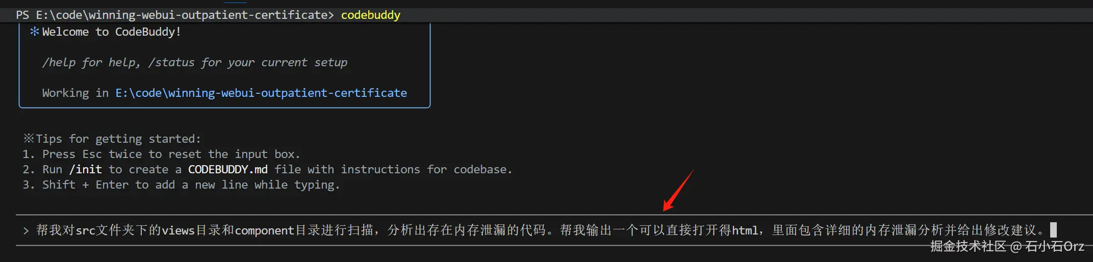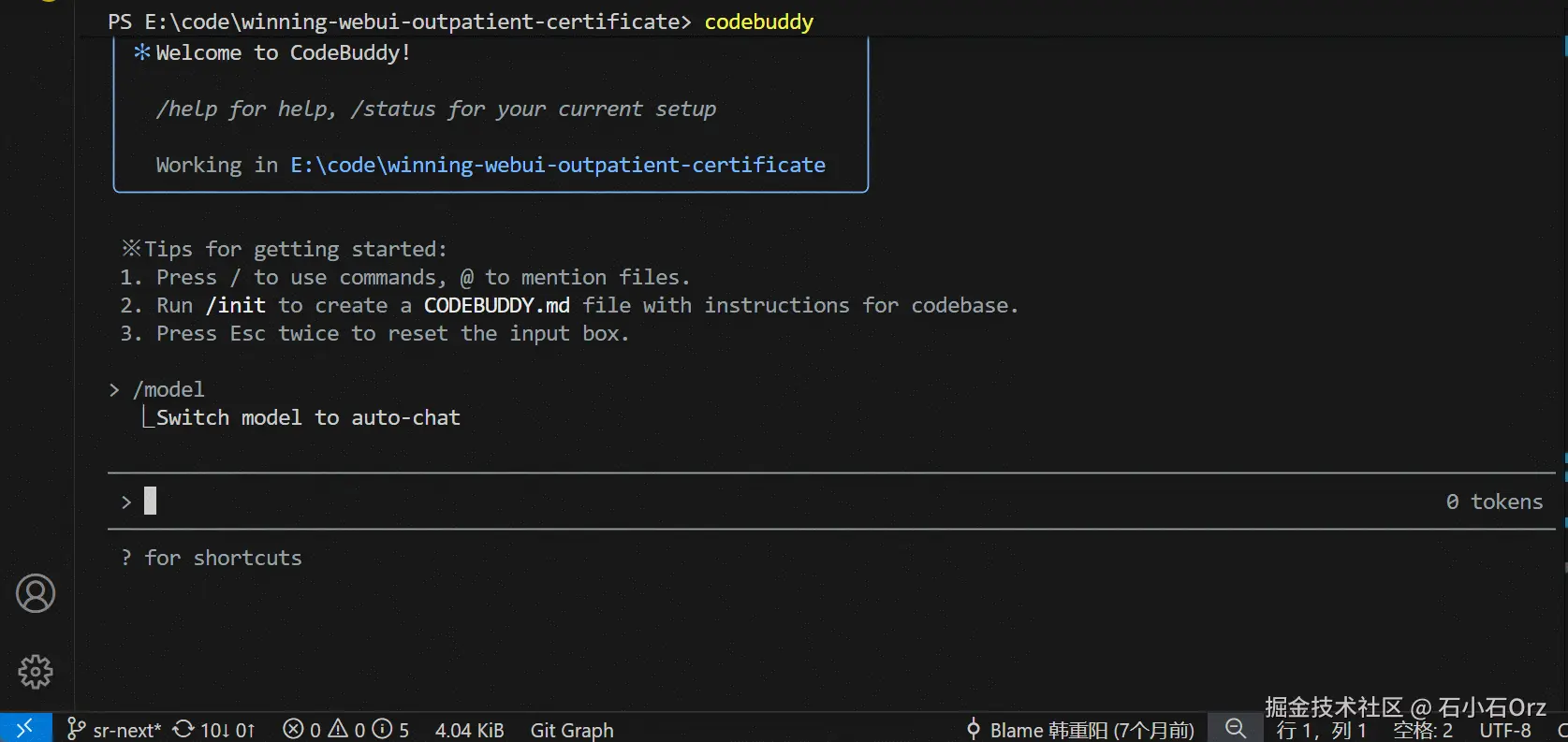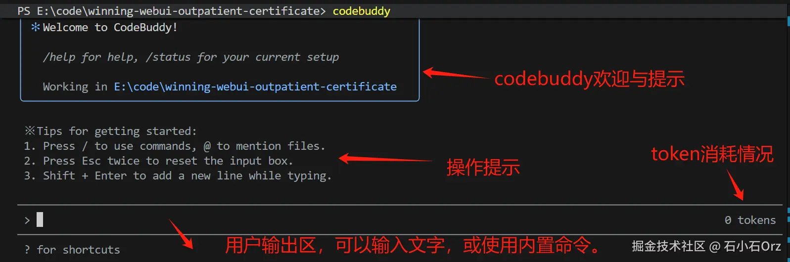 codebuddy的入门提示如下: