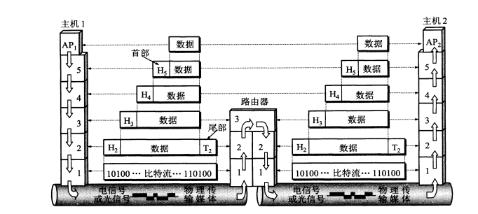 五层体系结构,结合上面两种结构来理解即可。