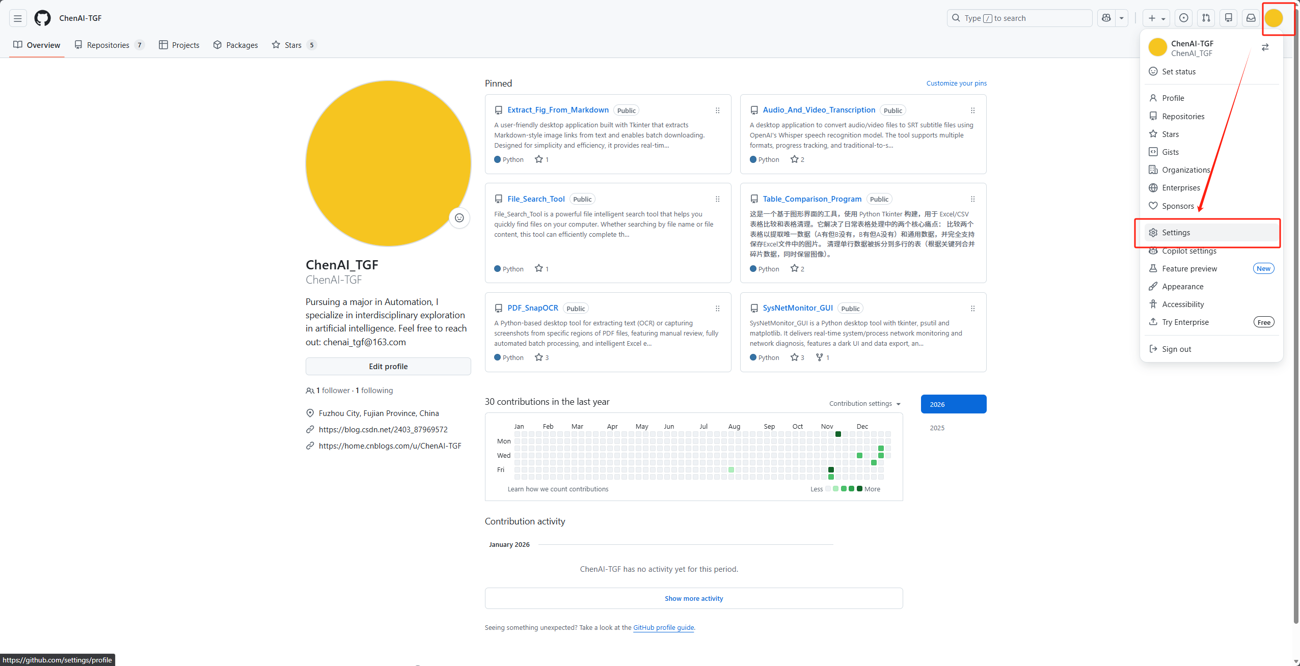 打开GitHub官网,登录后点击右上角头像 →